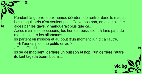Après maintes discussions, les homos réussissent à faire parti du maquis contre les allemands.