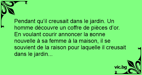 En voulant courir annoncer la воnnе nouvelle à sa femme à la maison, il se souvient de la raison pour laquelle il creusait dans le jardin...