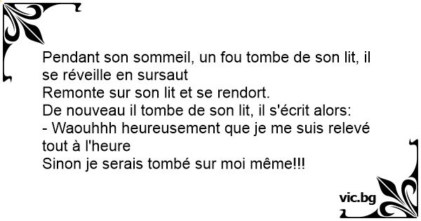 Pendant son sommeil, un fou tombe de son lit, il se réveille en sursaut
