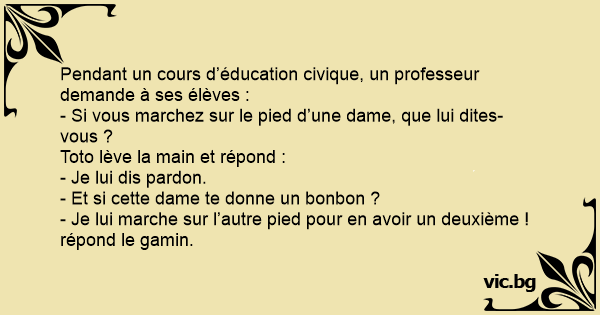 Pendant un cours d’éducation civique, un professeur demande à ses élèves :