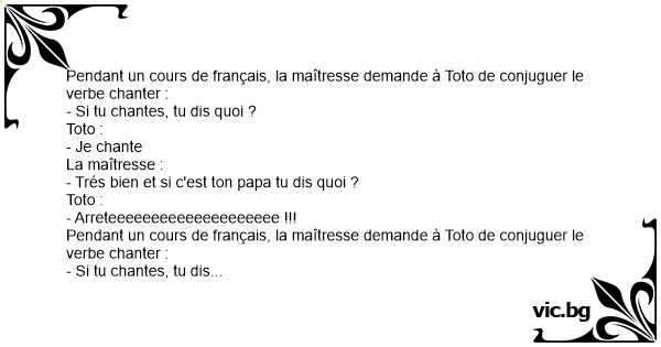 Pendant un cours de français, la maîtresse demande à Toto de conjuguer le verbe chanter :