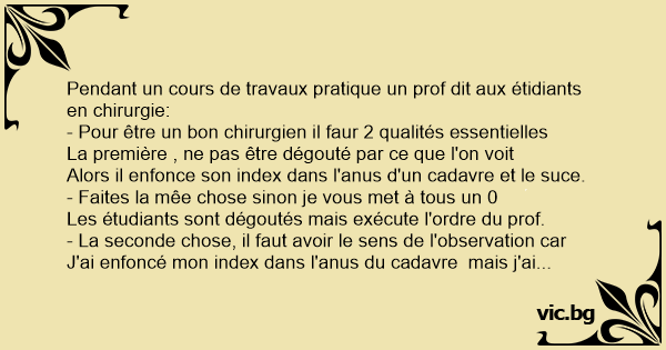 Pendant un cours de travaux pratique un prof dit aux étidiants en chirurgie: