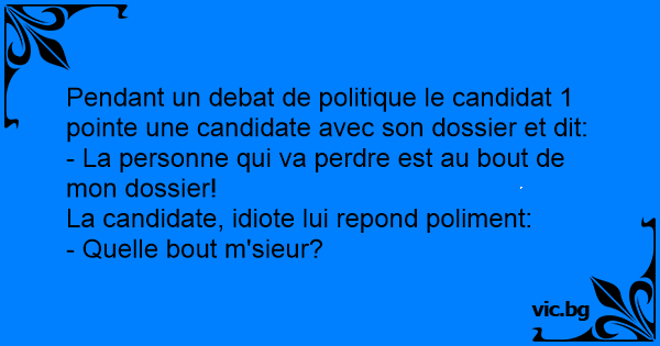 Pendant un debat de politique le candidat 1 pointe une candidate avec son dossier et dit:
