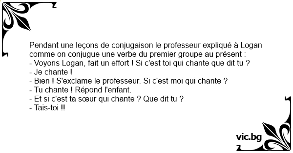 Pendant une leçons de conjugaison le professeur expliqué à Logan comme on conjugue une verbe du premier groupe au présent :