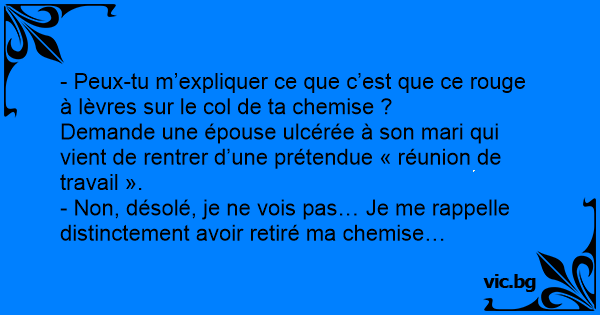 - Peux-tu m’expliquer ce que c’est que ce rouge à lèvres sur le col de ta chemise ?