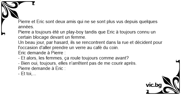 Pierre a toujours été un play-boy tandis que Eric à toujours connu un certain blocage devant un femme.
