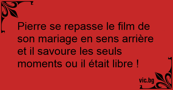 Pierre se repasse le film de son mariage en sens arrière et il savoure les seuls moments ou il était libre !