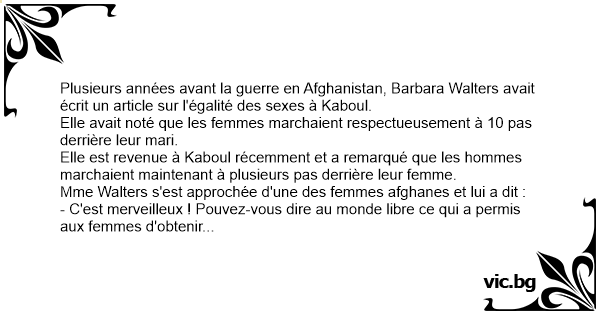 Plusieurs années avant la guerre en Afghanistan, Barbara Walters avait écrit un article sur l'égalité des sexes à Kaboul.