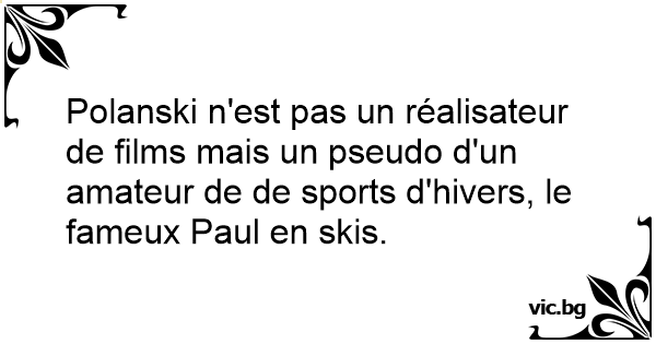 Polanski n'est pas un réalisateur de films mais un pseudo d'un amateur de de sports d'hivers, le fameux Paul en skis.