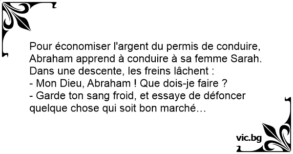 Pour économiser l'argent du permis de conduire, Abraham apprend à conduire à sa femme Sarah.