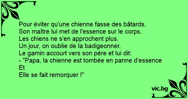 - "Papa, la chienne est tombée en panne d'essence