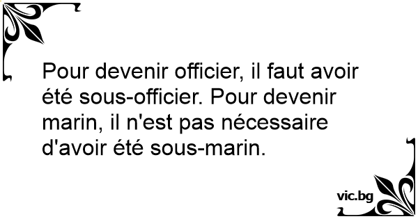 Pour devenir officier, il faut avoir été sous-officier. Pour devenir marin, il n'est pas nécessaire d'avoir été sous-marin.
