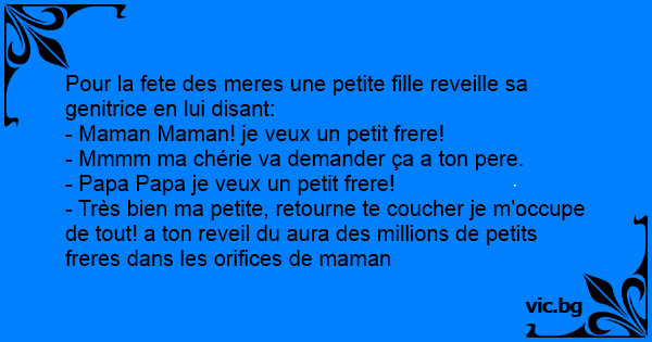 - Très bien ma petite, retourne te coucher je m'occupe de tout! a ton reveil du aura des millions de petits freres dans les orifices de maman