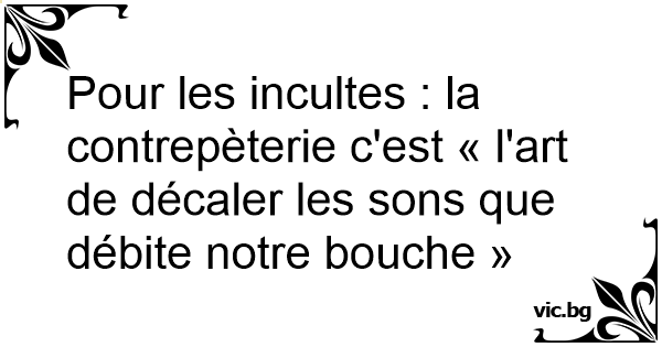 Pour les incultes : la contrepèterie c'est « l'art de décaler les sons que débite notre bouche »