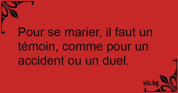 Pour se marier, il faut un témoin, comme pour un accident ou un duel.