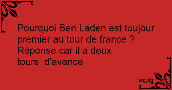 Pourquoi Ben Laden est toujour premier au tour de france ?