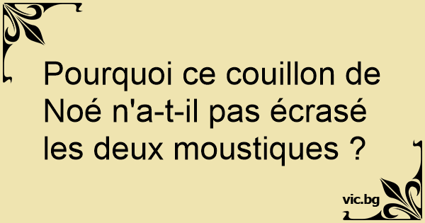 Pourquoi ce couillon de Noé n'a-t-il pas écrasé les deux moustiques ?