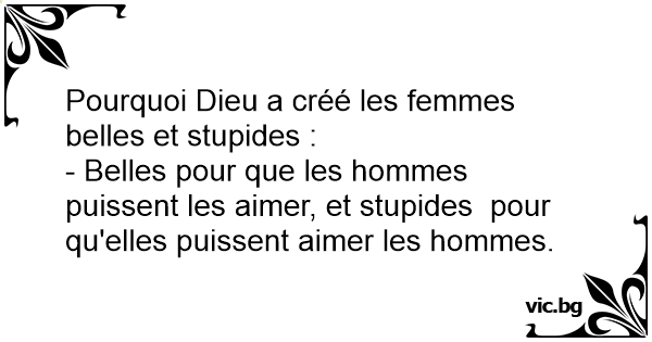 - Belles pour que les hommes puissent les aimer, et stupides pour qu'elles puissent aimer les hommes.