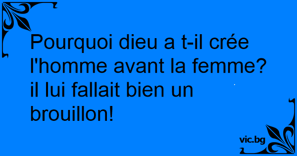 Pourquoi dieu a t-il crée l'homme avant la femme? il lui fallait bien un brouillon!