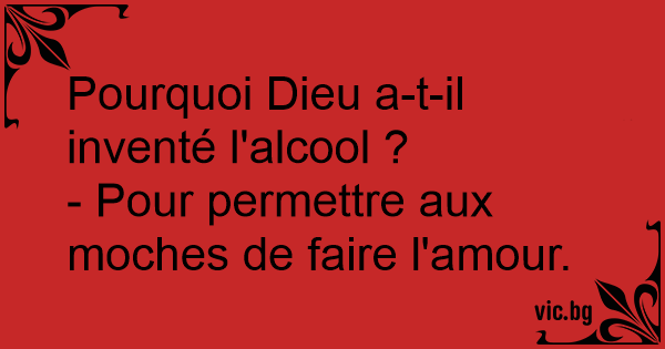 Pourquoi Dieu a-t-il inventé l'alcool ?