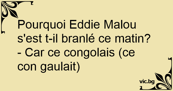 Pourquoi Eddie Malou s'est t-il branlé ce matin?