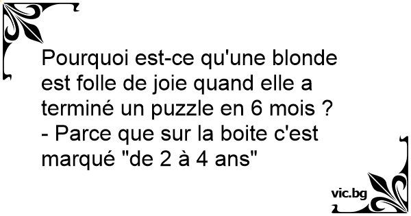 Pourquoi est-ce qu'une blonde est folle de joie quand elle a terminé un puzzle en 6 mois ?