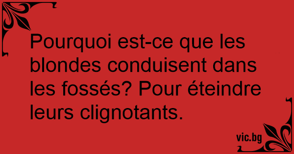 Pourquoi est-ce que les blondes conduisent dans les fossés? Pour éteindre leurs clignotants.