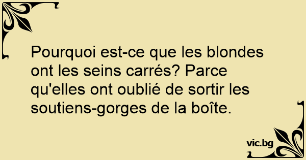 Pourquoi est-ce que les blondes ont les seins carrés? Parce qu'elles ont oublié de sortir les soutiens-gorges de la boîte.