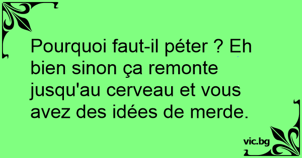 Pourquoi faut-il péter ? Eh bien sinon ça remonte jusqu'au cerveau et vous avez des idées de меrdе.