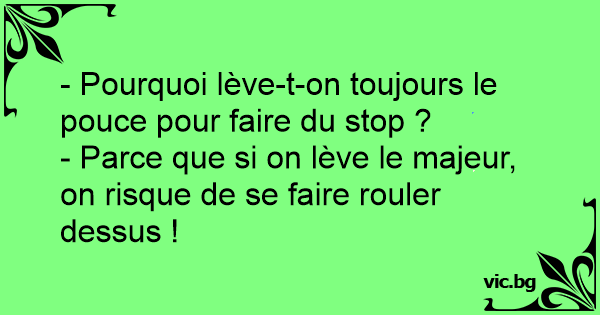 - Parce que si on lève le majeur, on risque de se faire rouler dessus !