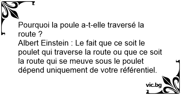 Albert Einstein : Le fait que ce soit le poulet qui traverse la route ou que ce soit la route qui se meuve sous le poulet dépend uniquement de votre référentiel.
