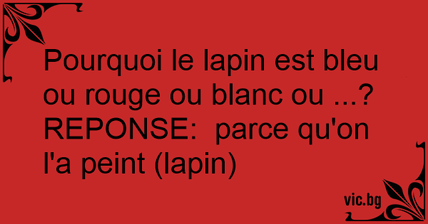 Pourquoi le lapin est bleu ou rouge ou blanc ou ...?