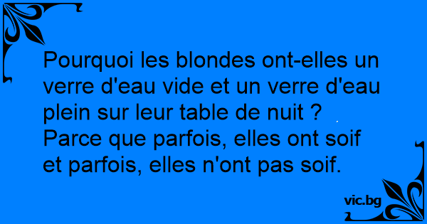 Pourquoi les blondes ont-elles un verre d'eau vide et un verre d'eau plein sur leur table de nuit ?
