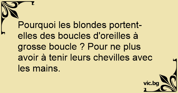 Pourquoi les blondes portent-elles des boucles d'oreilles à grosse boucle ? Pour ne plus avoir à tenir leurs chevilles avec les mains.