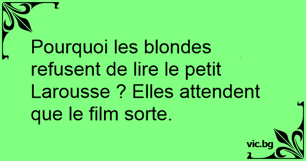 Pourquoi les blondes refusent de lire le petit Larousse ? Elles attendent que le film sorte.