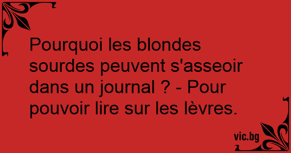 Pourquoi les blondes sourdes peuvent s'asseoir dans un journal ? - Pour pouvoir lire sur les lèvres.