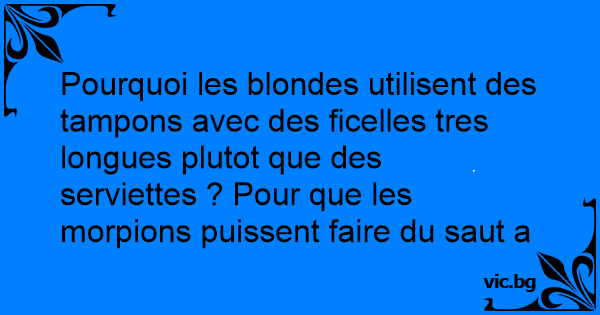 Pourquoi les blondes utilisent des tampons avec des ficelles tres longues plutot que des serviettes ? Pour que les morpions puissent faire du saut a l'elastique