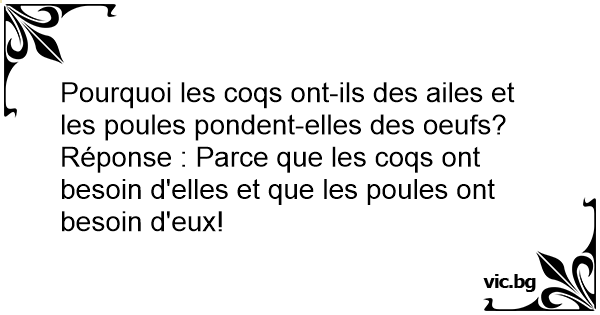 Réponse : Parce que les coqs ont besoin d'elles et que les poules ont besoin d'eux!