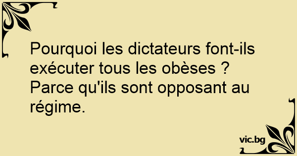 Pourquoi les dictateurs font-ils exécuter tous les obèses ?