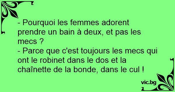 - Parce que c'est toujours les mecs qui ont le robinet dans le dos et la chaînette de la bonde, dans le cul !