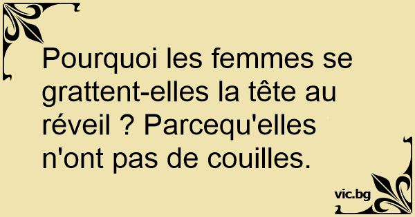 Pourquoi les femmes se grattent-elles la tête au réveil ? Parcequ'elles n'ont pas de couilles.