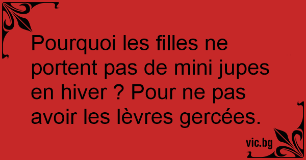 Pourquoi les filles ne portent pas de mini jupes en hiver ? Pour ne pas avoir les lèvres gercées.