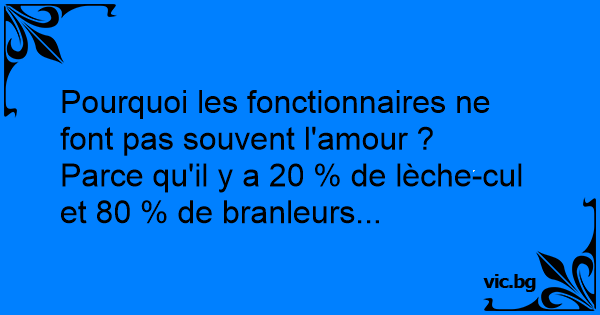 Pourquoi le nombre de cas de SIDA chez les fonctionnaires est très faible ? Parce que chez les fonctionnaires, il y a 80 % de branleurs et 20 % de lèche-culs