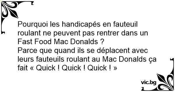 Parce que quand ils se déplacent avec leurs fauteuils roulant au Mac Donalds ça fait « Quick ! Quick ! Quick ! »