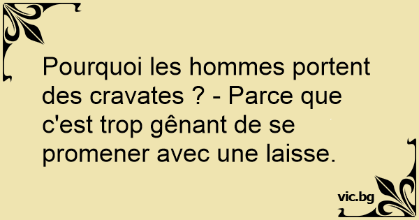 Pourquoi les hommes portent des cravates ? - Parce que c'est trop gênant de se promener avec une laisse.