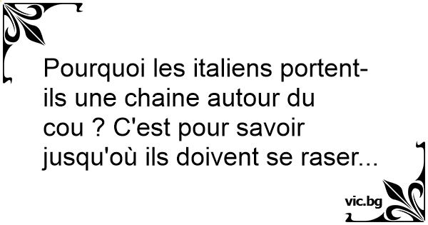 Pourquoi les italiens portent-ils une chaine autour du cou ? C'est pour savoir jusqu'où ils doivent se raser...