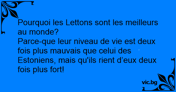 Parce-que leur niveau de vie est deux fois plus mauvais que celui des Estoniens, mais qu'ils rient d’eux deux fois plus fort!