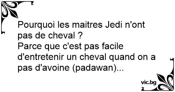 Parce que c'est pas facile d'entretenir un cheval quand on a pas d'avoine (padawan)...