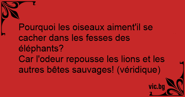 Pourquoi les oiseaux aiment'il se cacher dans les fesses des éléphants?