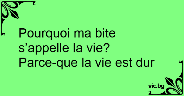 Pourquoi ma bite s’appelle la vie?